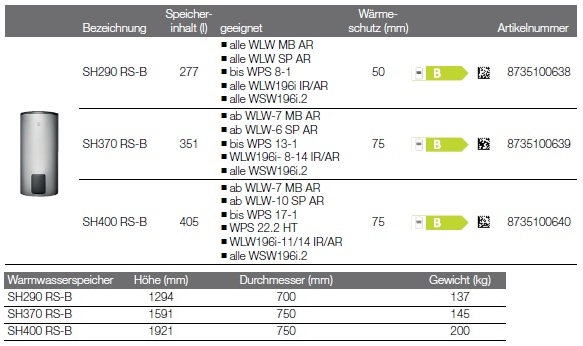 Nebenstehender Warmwasser-Speicher für Wärmepumpen Logatherm