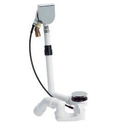 Model 6170.10 (Art.-Nr. 723 347) mit erhöhrtem Überlauf und integriertem Einlauf, Sichtteile verchromt und Abgangsbogen 45° DN 40/50 mm für Standardwannen, Bauhöhe 110 mm, Überlaufkörper 33 mm, Ablaufleistung 0,92 l/s, Sperrwasserhöhe 50 mm, Durchmesser 50 mm, Größe 1, Bowdenzuglänge 560 mm |